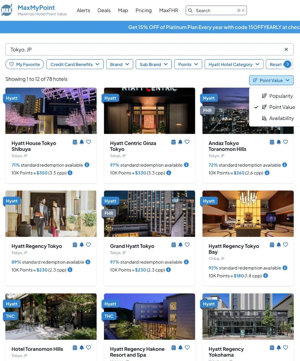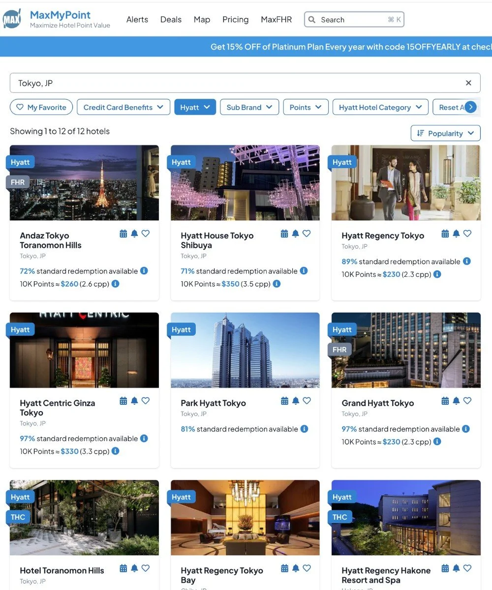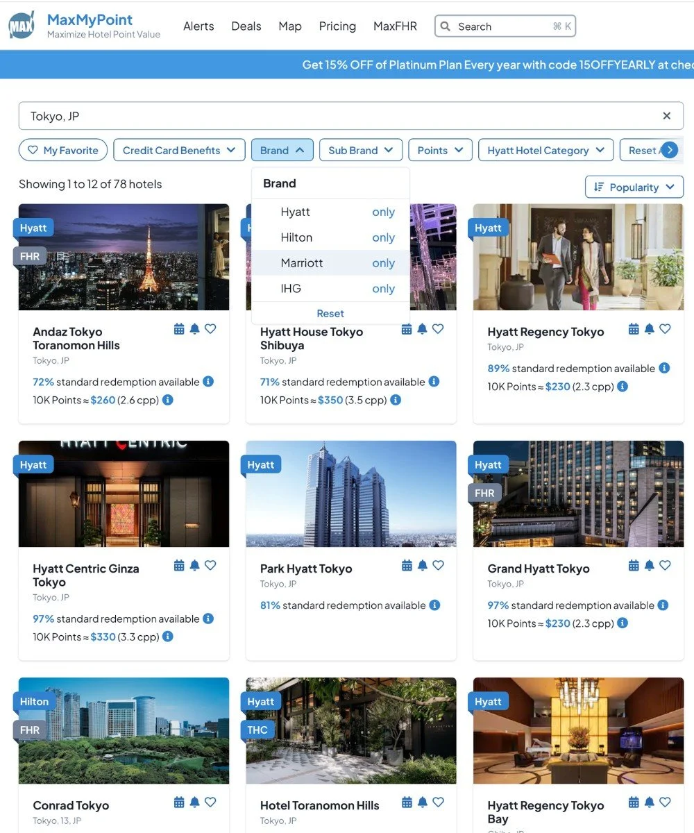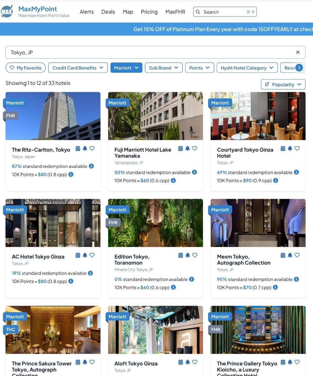 A quick search on maxmypoint.com (the free email sign-up version) populates a ton of options in Tokyo.