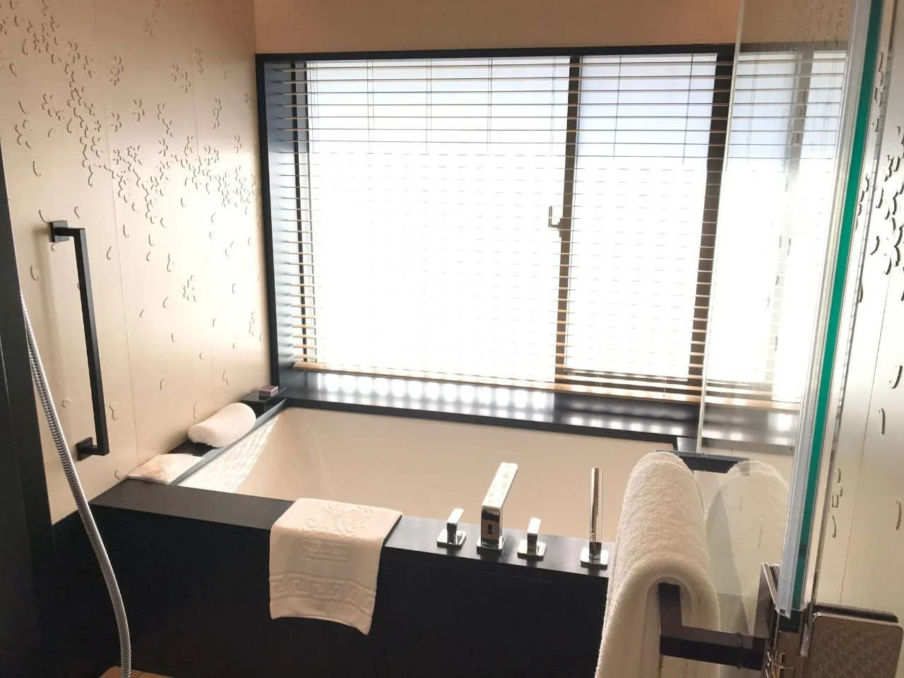 We loved the walls in the bathroom and admired it from our bathtubs - a beautiful cherry blossom motif etched into the wall.