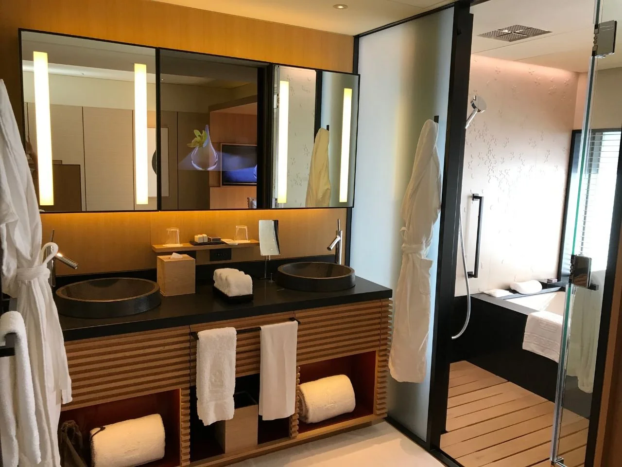 The vanity mirror with a TV screen embedded captured my wife’s imagination - as seen in the photo below (yes, she’s mindblown).